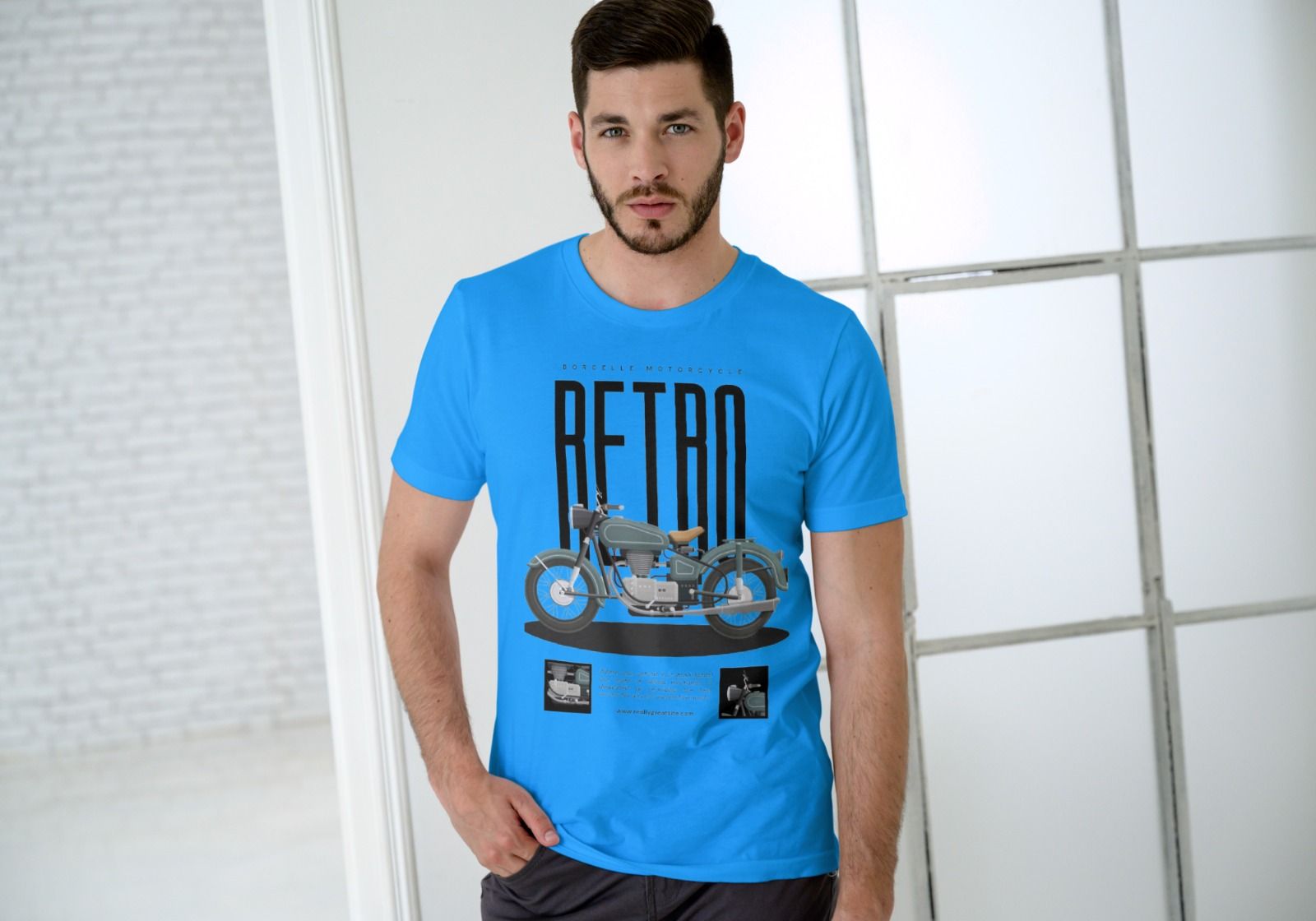 Blue Printed Cotton T-Shirt for Men
